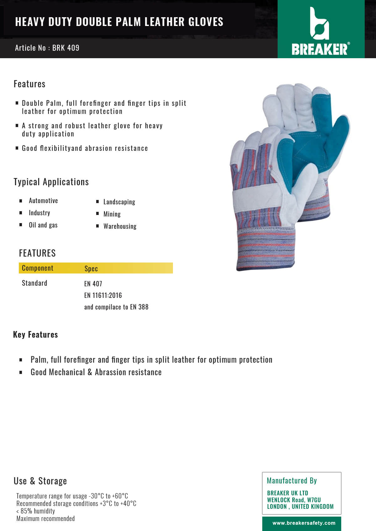 Breaker Heavy Duty Double Palm Leather Gloves (BRK 409)