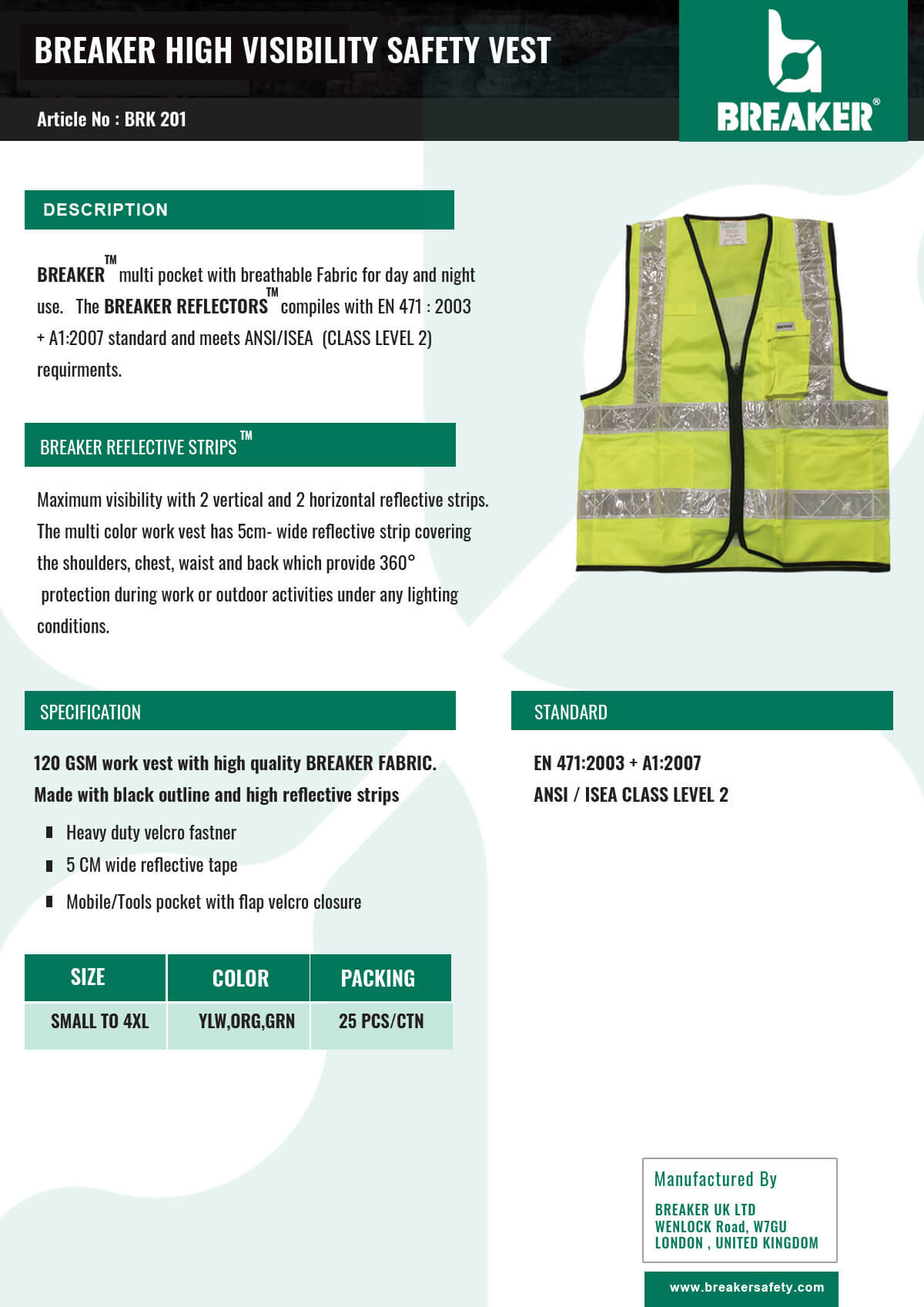 Standard– En 471:2003 + A1:2007 Ansi/Isea Class Level 2