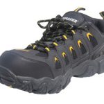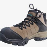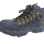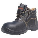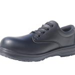 Safety shoes is a durable shoe that has a protective reinforcement in the toe which protects the foot from falling objects or compression, usually combined with a mid sole plate to protect against punctures from below.